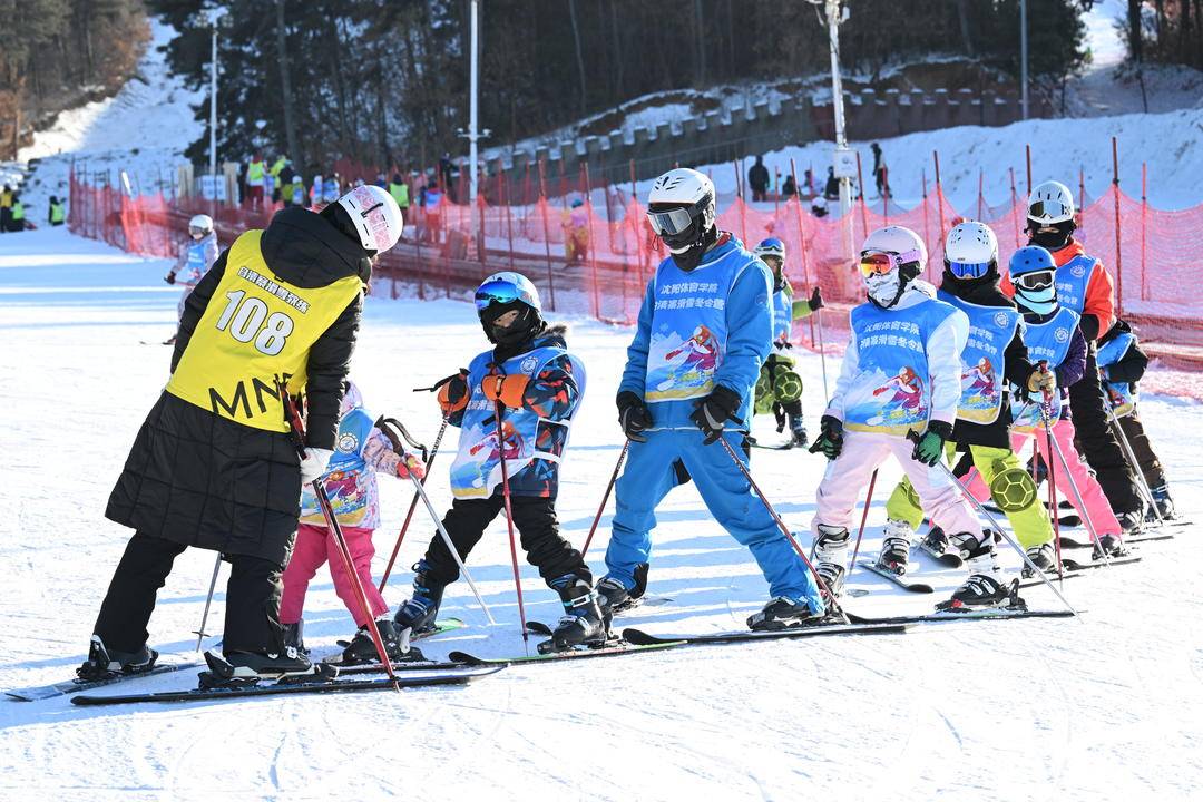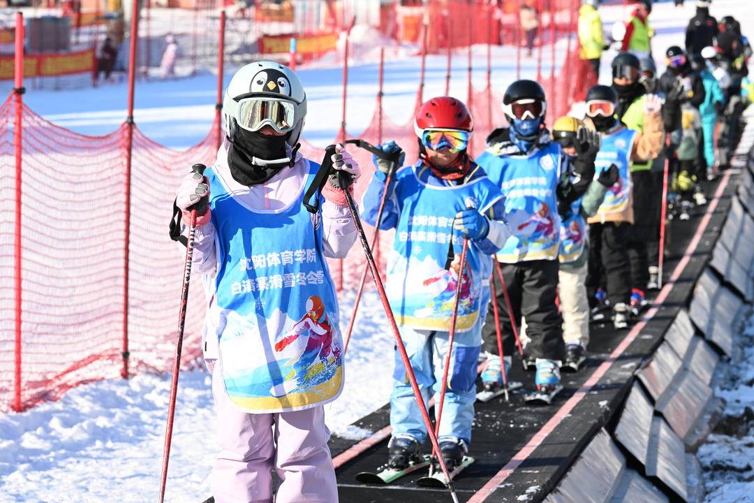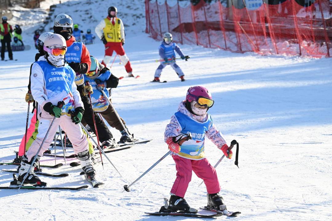 На горнолыжном курорте Байцинчжай в городе Шэньян дети в ярких лыжных костюмах, полностью экипированных шлемами, лыжными палками и защитным снаряжением, медленно спускались по склонам под руководством инструкторов , наслаждаясь радостью катания на лыжах.