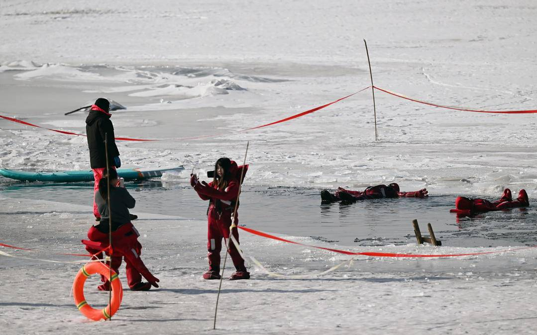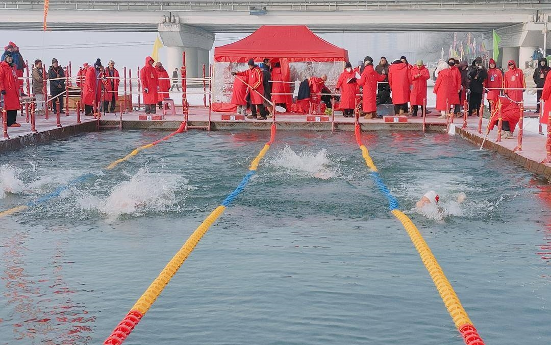 В соревнованиях по зимнему плаванию на реке Хуньхэ приняли участие более 300 китайских и иностран...