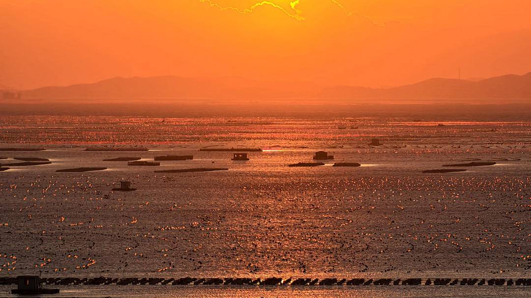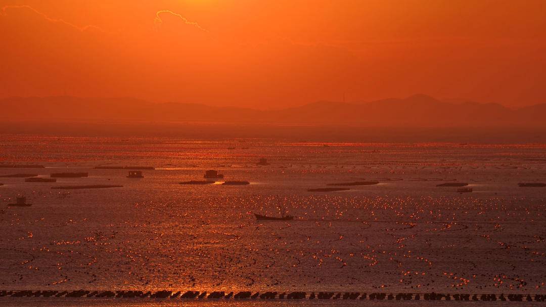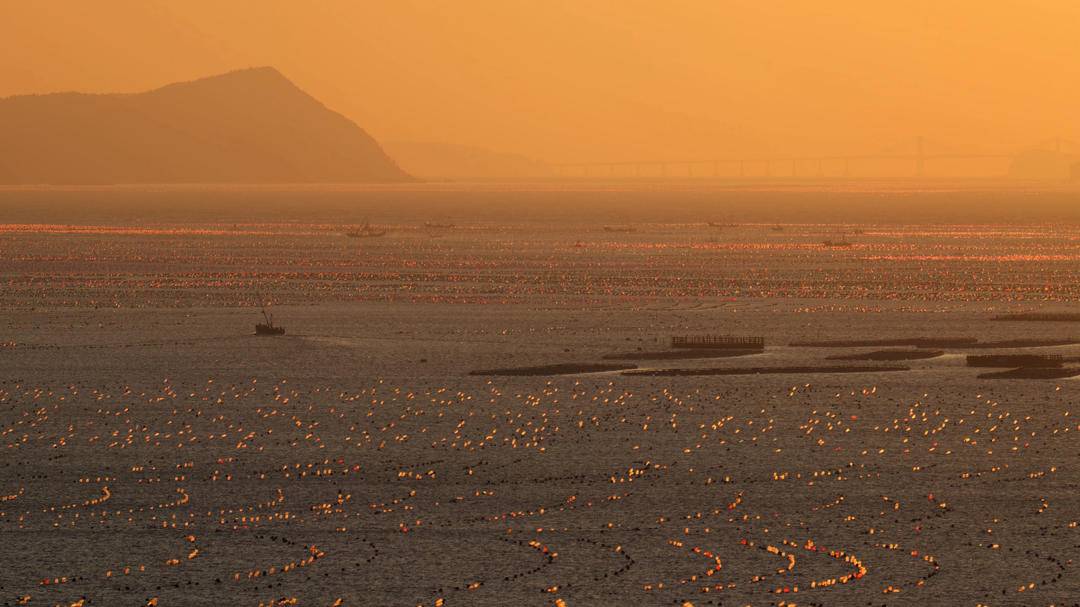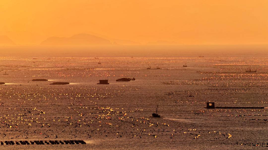 Рано утром солнце восходит на востоке. Окутанное сиянием восхода, морское ранчо в уезде Чанхай города Далянь провинции Ляонин открывает живописную картину.