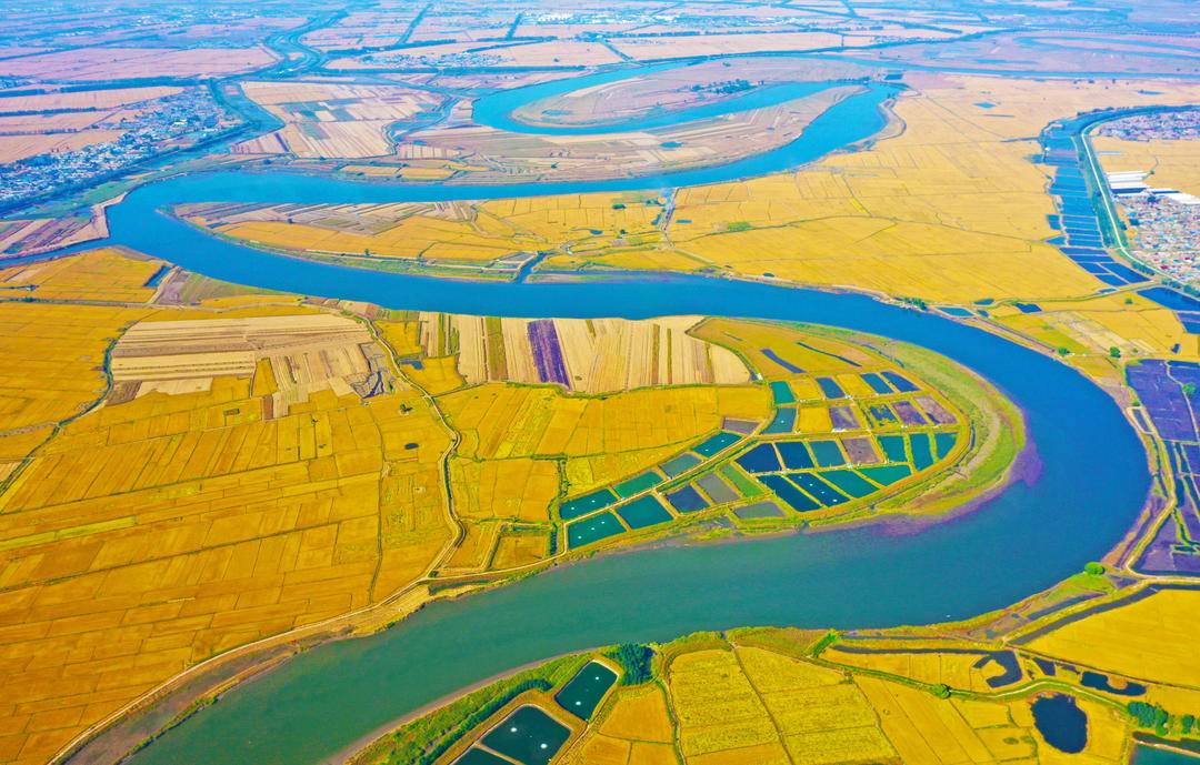 В настоящее время в провинции Ляонин начался сезон сбора урожая риса, и осень окрасила землю в золотистый цвет. Река Ляохэ течет по золотистым рисовым полям. Разбросанные сельскохозяйственные угодья и аккуратно расположенные деревни вместе создают великолепную картину урожая.