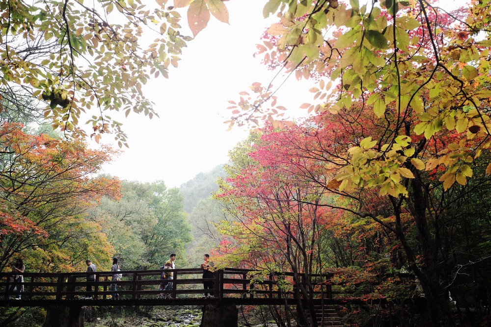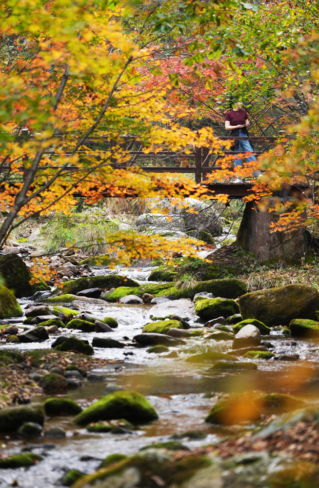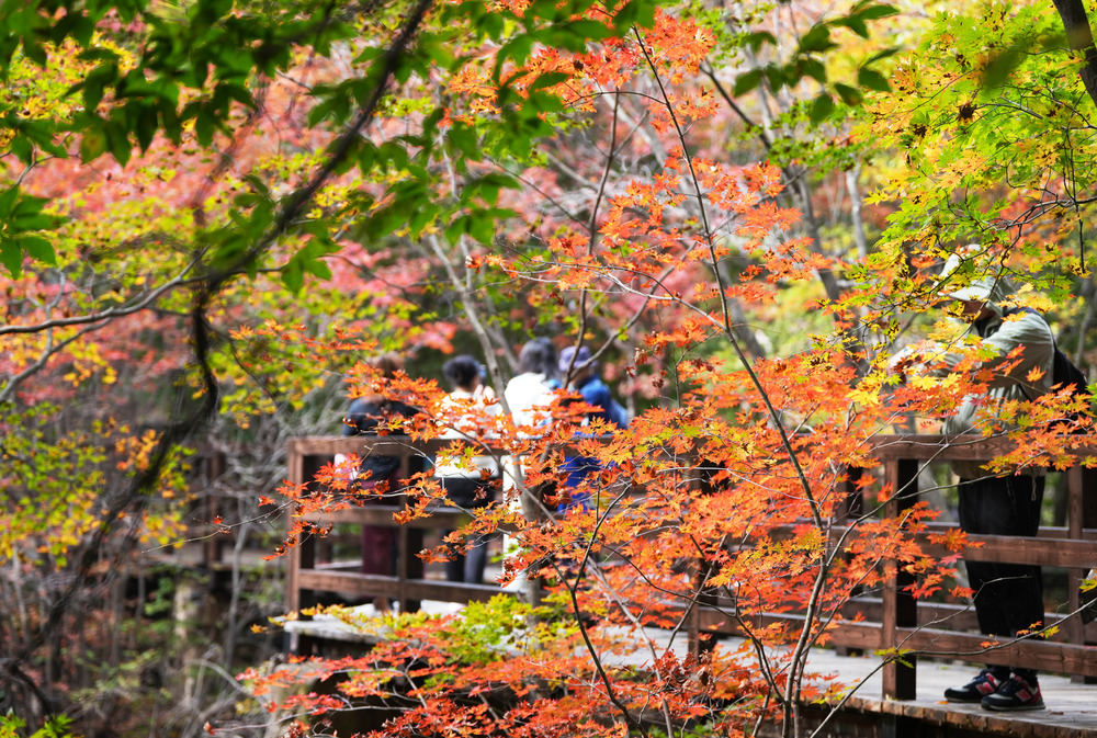 Живописный район Лаобяньгоу в Бэньси, провинция Ляонин , блистателен осенью. Кленовые листья окрасились в ярко-красный цвет, открывая пик сезона осмотра достопримечательностей. Туристы приезжают толпами, чтобы насладиться захватывающим дух природным великолепием.
