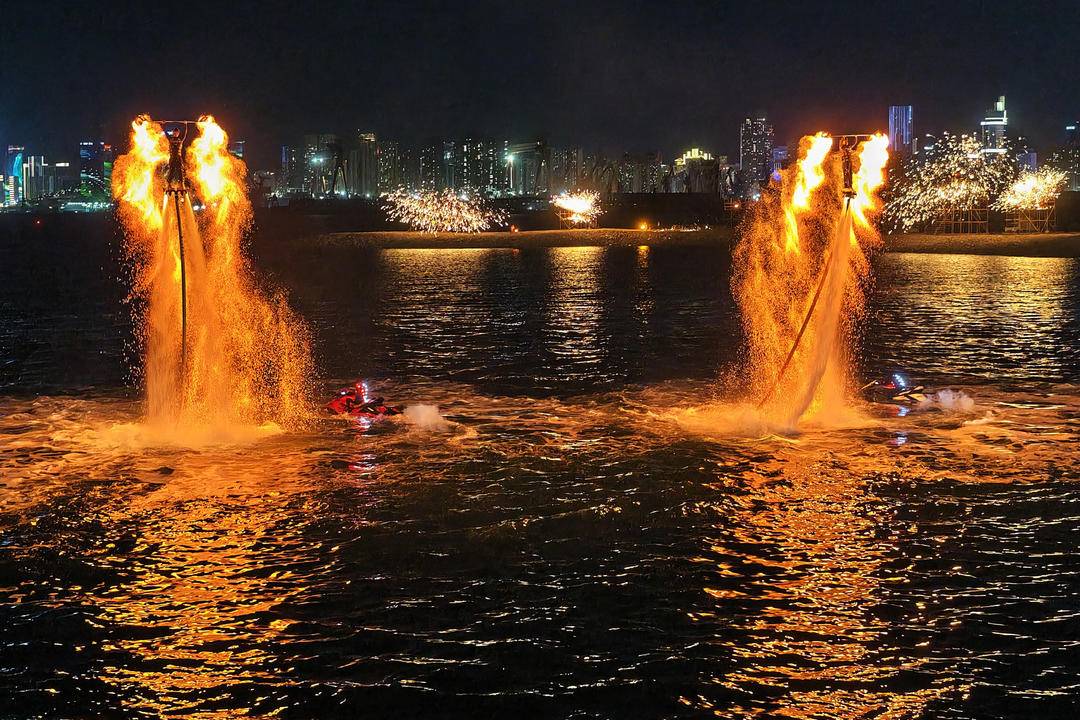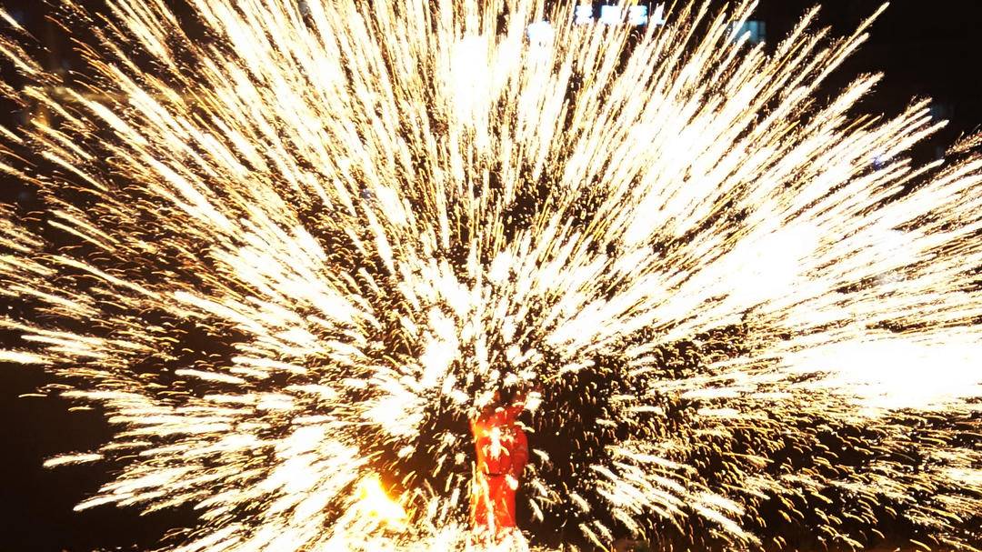 На днях на побережье залива Союй в Даляне провинции Ляонин , представления о нематериальном культурном наследии (НКН), такие как брызги золотистых искр озаряли все вокруг, и волны жара чувствовали зрители. Когда огонь встречался с морем, мастера размахивали пылающими горшками, высекая снопы искр, освещая ночное небо.