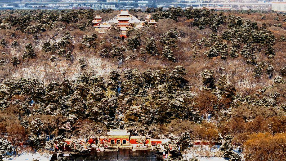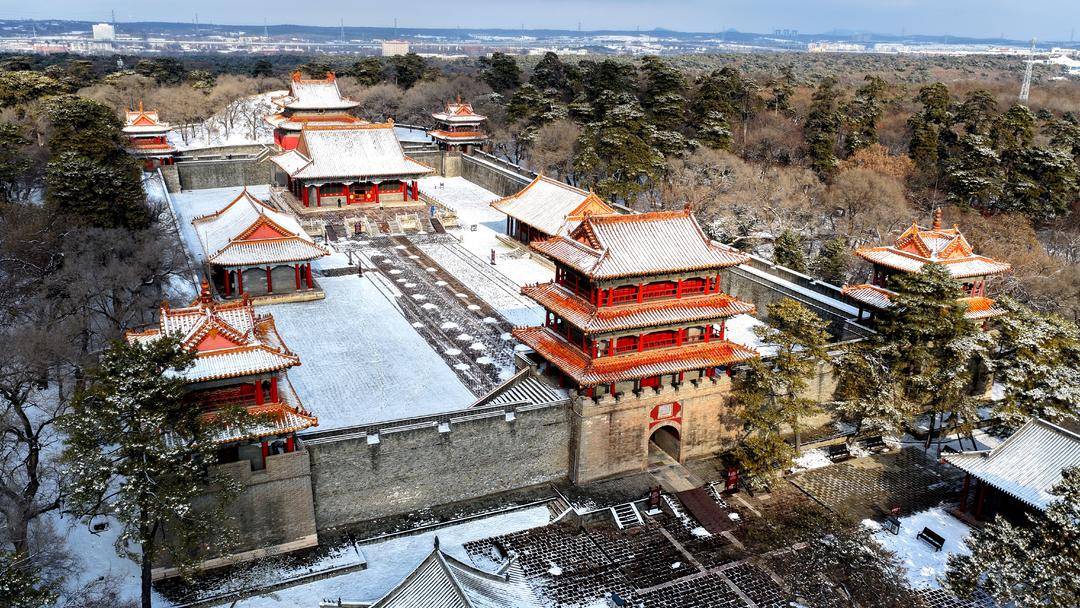 После снега парк Дунлин города Шэньян (провинция Ляонин) покрывается снегом, как будто серебром. Снег остается белым, сосны и кипарисы зеленеют, древние здания становятся еще более величественными, что создаёт уникальный пейзаж Шэньяна холодной зимой.