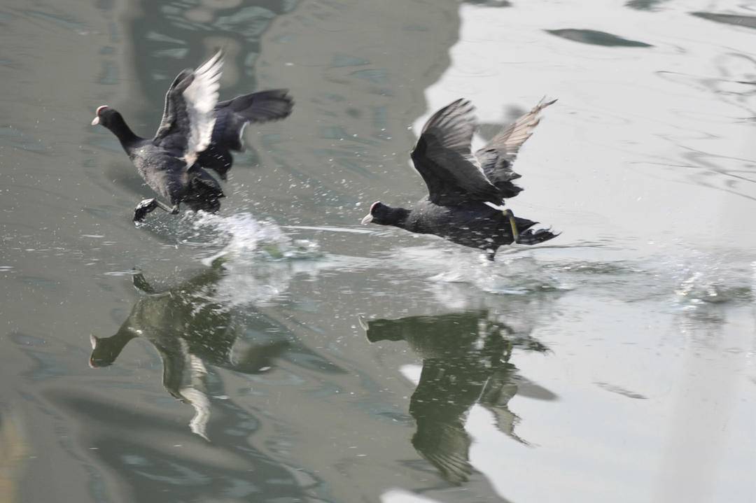 На реке Наньшахэ в городе Аньшань провинции Ляонин стаи диких птиц, в том числе обыкновенные лысухи и кряквы, резвятся и кормятся на воде , наполняя город яркой жизнью.