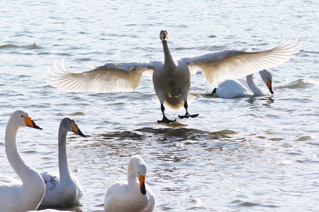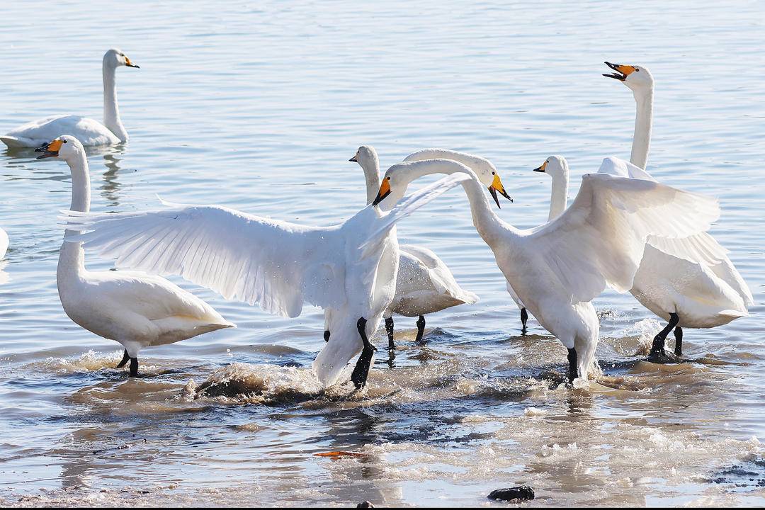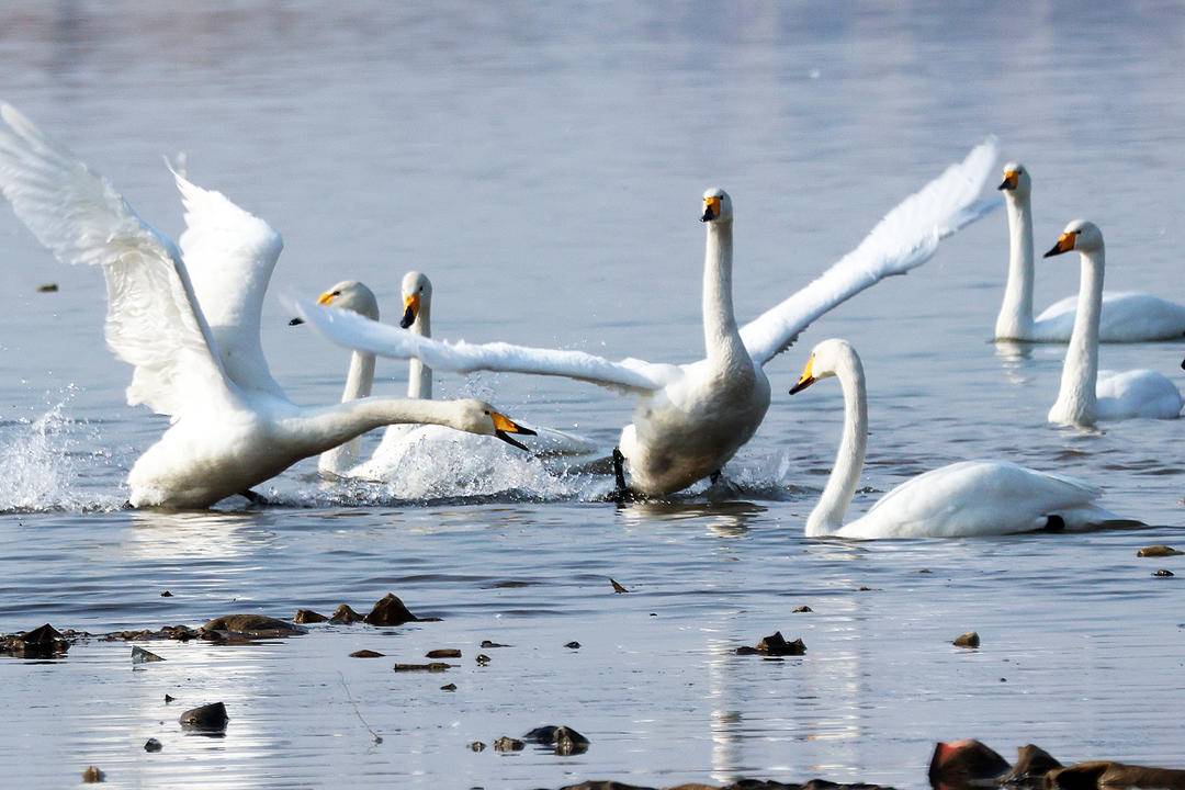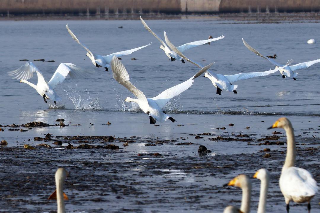 На днях стаи белых лебедей собрались на реке Далинхэ в городе Чаоян провинции Ляонин , создав поэтичный экологический пейзаж. Это стало одним из самых завораживающих зрелищ северо - восточного Китая весной.